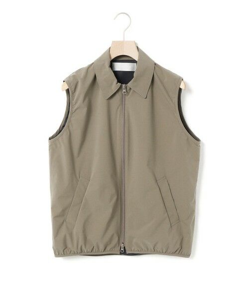 トラッド+スポーティの見た目と、 春先から端境期まで使える汎用性の高いジップアップベストです。2000年代前後、ストリートでもアウトドアブランドのウェアを取り入れることが普通になり、多くの名作が生まれた中より、近年のテックデザインブームでこうしたベストが再び注目されています。当時の型をベースに今の気分に合わせてデザイン。春夏に着用しやすいようスタンドカラーではなくレギュラーカラーでデザイン。ただしアウターライクに襟の台座部分をしっかりと付け、また腰ポケットはトレンチコートのような幅の広めな箱ポケットに変更しトラッドな雰囲気にしました。フロントジップやアームホールや裾のパイピング始末を生かしスポーティーな要素取り入れています。バックヨークは印象的なM字ライン。2Wayストレッチ性のあるリサイクルポリエステル素材で多少の撥水効果もあり、着やすく季節の変わり目に活躍する1枚です