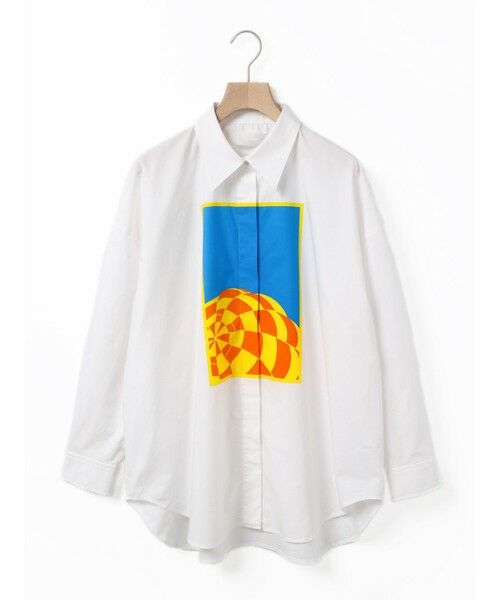 メンズライクでベーシックなワイドシャツ。BODYはオフホワイト、プリントは「UP」のみで展開。