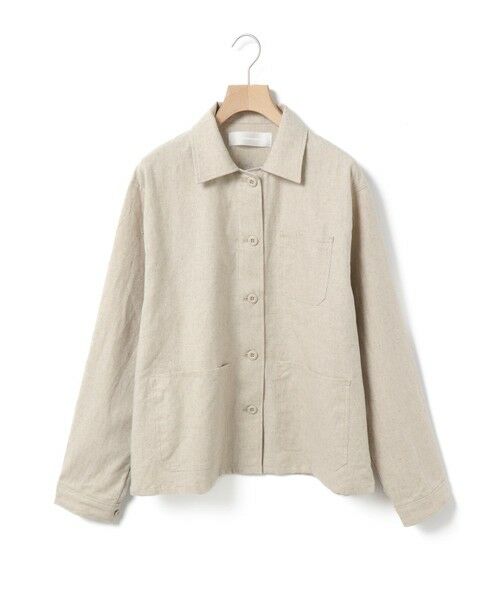ペン刺しポケットなどフレンチワークなディテールを取り入れたナチュラルで重すぎない雰囲気の綿麻ワークシャツジャケット。洗い仕上げ。
