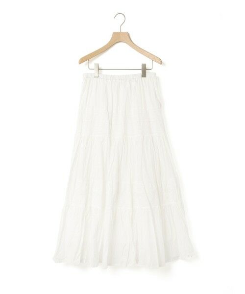 古着屋さんにあるようなヴィンテージ感のあるイメージでデザインしたレースコンビボリュームスカート。2つのレースを組み合わせ、レースの柄違いを楽しんでいただけるのがポイントです。裾にフレアのボリュームをつけややマーメイドラインが特徴。ショートブーツやスニーカー合わせもしやすい着丈です。しっかりと洗い加工をし、素材のくたっとした表情がより雰囲気のある仕上がりにしています。ウエスト総ゴム/内紐あり、裏地付き。素材はローン/綿レースを洗い仕上げ。