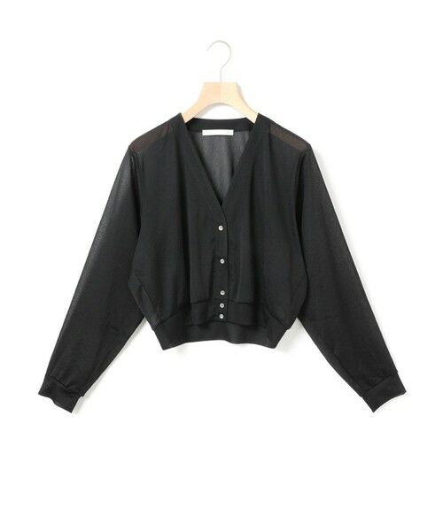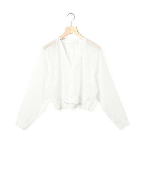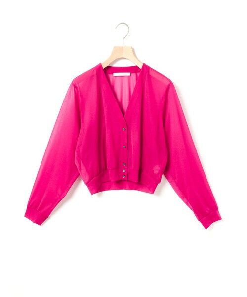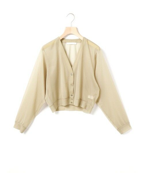 キャミやタンクの上に羽織るだけで様になるショート丈のカーディガン。今季人気のシアーでデザインした羽織りアイテムで、ワンピース・ボトム、どちらと合わせてもバランスがとりやすよう丈感を設定。ボトムと合わせた時、腰辺りに乗るようなフィット気味の裾サイズ・ふんわりするシルエットにこだわったデザイン。透け感のあるトリコットシフォン素材の合繊素材ながらもビンテージライクでナチュラルなシワ感が特徴。カットソーならではのストレッチ性でストレスフリーな着心地もポイントです。ベーシックカラーと差し色にピンクを取り入れた4色展開。(※透け感がある為ピンクも強すぎず着こなせて新鮮。カーキやネイビー等とのコーデに特におすすめです。)