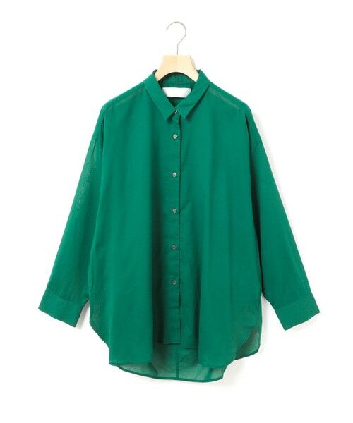 MARMARMAR定番バックコクーンシャツを真夏には羽織としても活躍するような軽い素材に変更しデザインしたシアーバックコクーンレギュラーシャツ。素材の変更により後ろの膨らみが軽減されないようタック分量等を微調整し、エアリーなシルエットをKEEP。程よい透け感で今のムードを加えています。強撚糸によるドライなタッチが特徴的で清涼感のある綿100%のドビー素材を使用しました。きれいめにもカジュアルにも幅広く対応できる素材感で、ベーシックカラーと差し色にグリーンを取り入れた4色展開となっています。