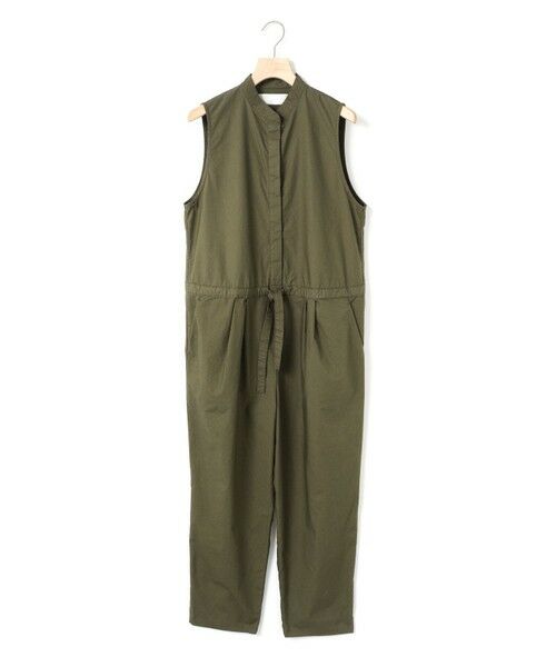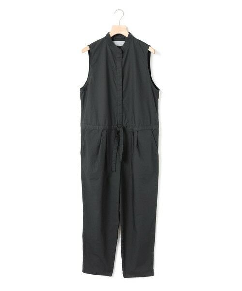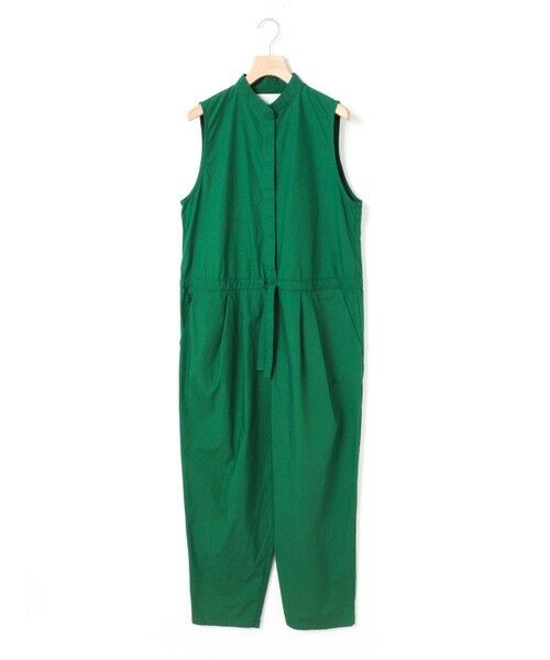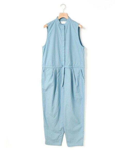 インにTシャツ等をレイヤードしても、ノースリーブで一枚着としても着用できるオールインワン。パンツ部分はイージー仕様でウエストの紐を結ぶデザイン。リラックス感がありながらバンドカラーでトラッドな雰囲気もあるアイテム。上身頃のボタンをいくつか外し、紐を結んでブラウジングするラフな着こなしがオススメ。折り返しが可能な素材感及び裾巾なのでロールアップとブラウジング加減で幅広い身長の方に対応可。高密度に打ち込んだハリのある綿100%のタイプライター素材。洗い仕上げで自然なシワ感を残した風合いが特徴です。