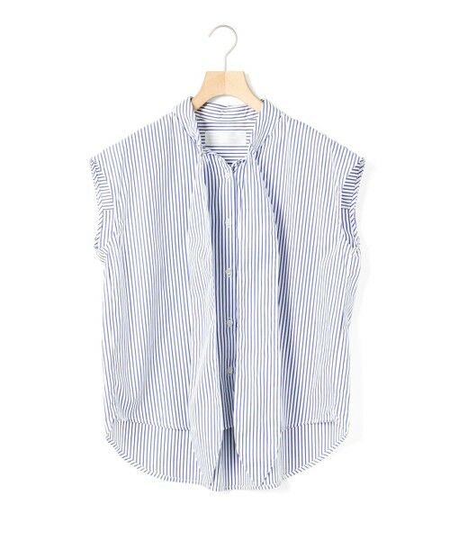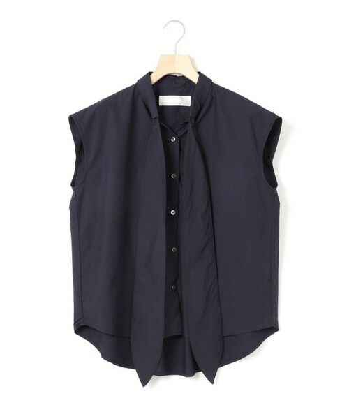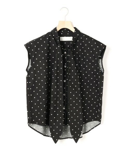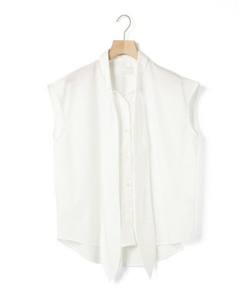 1-830028 /シャツカラーリボンシャツをアレンジしたリボン付きフレンチスリーブシャツです。シャツカラーのディテールはそのままに、全体的にシルエットをスッキリと削り丈も短くしフレンチスリーブに変更しました。全体のムード感を崩さずバランスよくリボンの幅もスッキリと調整しています。無地とストライプ柄とドット柄の3パターンの生地でデザインしたシャツでどれも雰囲気が異なって魅力的です。清楚にシャツインしても良く女性らしい着こなしを演出した1枚です。