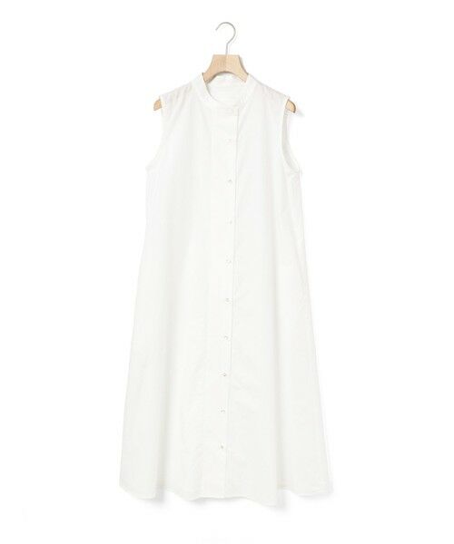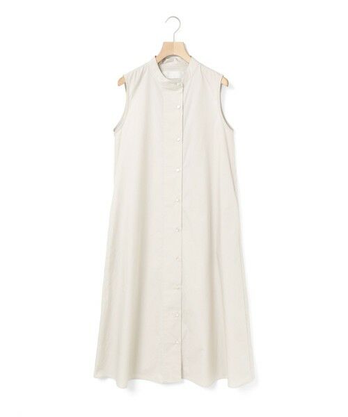 ジレとしてもスタイリングできるノーカラージレワンピースです。スッキリとしたAラインのシルエットながら前立てをあえて存在感ある太さにしボタン位置を中央よりもずらしデザイン性を加えました。また、後ろ身頃のタックをステッチで抑えワンポイントのあるバックスタイルにしています。シンプルに1枚着でもよく、デザイン性あるシャツワンピースに仕上げた1枚です。キレイ目のタイプライター素材を使用。(2-830033/オープンカラーハーフスリーブシャツと共通素材※カラー展開は異なります)。