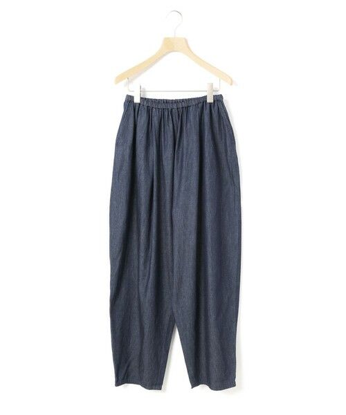 ウエストにタックを施したテーパードパンツです。丸みがあり裾にかけ細身のシルケットが特徴。柔らかいコットン生地を使用しているので晩夏から秋口にかけ大変重宝します。ウエストはリラックス感のあるゴム使用なので穿きやすく、中紐も付いた調整のきくデザインです。コーディネートのしやすいブルーとインディゴの2色展開はベーシックなカジュアルスタイルを演出します。シーズン通して長く着こなせる1枚です。