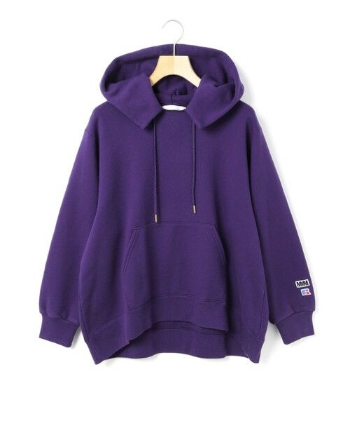 MARMARMAR × RUSSELL ATHLETIC コラボアイテム、ハイコットンスウェットパーカーです。サイズ感はあえてゆったりとした女性らしいシルエット。トラディッショナルなスウェットパーカーにスラックスやデニムを合わせたスタイリングにあえてヒールを合わせて女性らしくコーディネートするイメージでデザインしました。腰のカンガルーポケットに手を入れて歩いたらカッコいい女性像が出来上がるイメージ。フード紐を絞って首元をアレンジしていただけます。フードに通すコードは太めでGoldのハトメと弾丸チップを配しました。裾は若干の前後差をつけボトムス問わず合わすやすいシルエットに設計。左袖口にMMMのブランドネームとRUSSELL ATHLETICのブランドネームが入っています。洗いをかけた柔らかなウェット生地でロングシーズン活躍します。