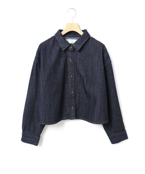 トレンド感のあるショートデニムシャツです。10ozデニム素材を使用しており定番のデニム生地より薄手の生地感となっています。シワになりにくいのが特徴。NO3-830045/デニムシャツと同型でデニム素材にして洗い仕上げにしています。前を開けて襟を少し後ろに抜いて着ると抜け感があるこなれた印象になります。袖周りはゆとりがあるので羽織としても使いやすい1枚。ヒップ上のショート丈シャツはインナーの長いアイテムやボリューム感のあるボトムなど、バランスもとりやすく色々なコーディネートを楽しんでいただけます。同型3-830046A/ビィンテージも展開。定番のハイウエストデニムパンツの1-860001A/1-860001DMとセットアップも素敵です。