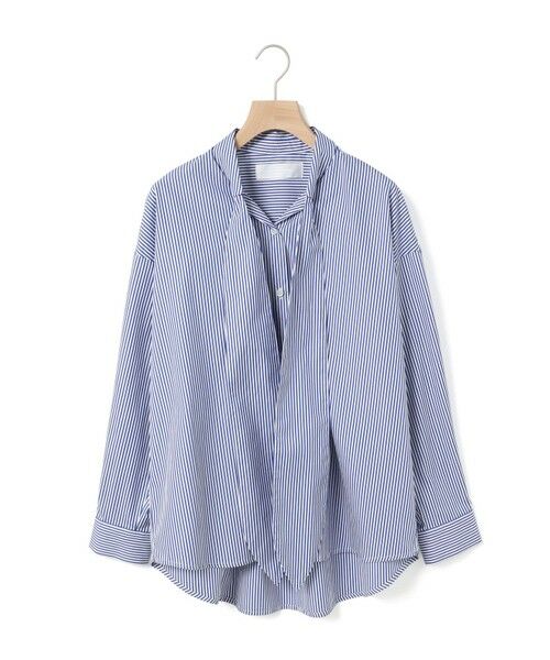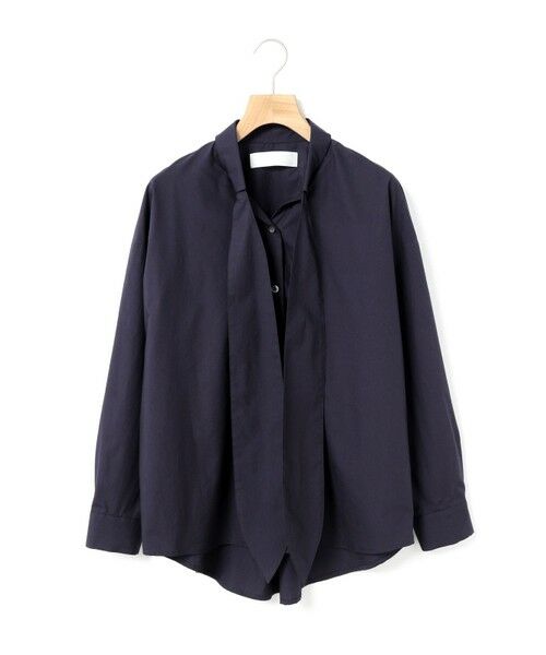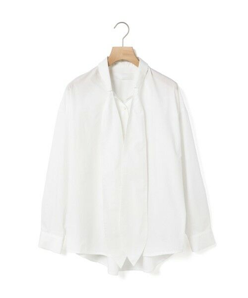 襟元のアレンジを楽しんでいただけるリボン付きシャツカラーです。ネクタイを襟に通したときのように襟から繋がるリボン状のボウタイは結ばないときは下ろしたままで恰好良く。リボンで結んだときはボリューム感がアクセントになる印象の違いがポイントです。袖口はサイズ調整ができるような形状にしています。きちんと感のある着こなしにも、デニム合わせなどのカジュアルなスタイリングにもお勧めです。オケージョン対応にも重宝できる1枚で無地とストライプの色展開です。Point袖丈:長袖デザイン:無地・ストライプネック:その他Detail裏地:なし透け感:多少あり(オフホワイトのみ)伸縮性:なし光沢感:なしポケット:なし※商品画像は、光の当たり具合やパソコンなどの閲覧環境により、実際の色味と異なって見える場合がございます。予めご了承ください。※商品の色味の目安は、商品単体の画像をご参照ください。こちらの商品 は MARcourt にてお取り扱いしております。店舗在庫等については直接店舗にお問い合わせください。
