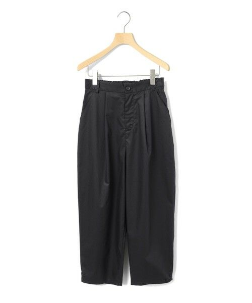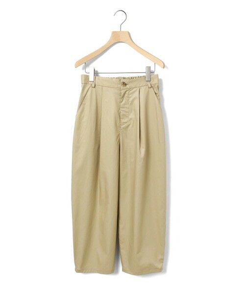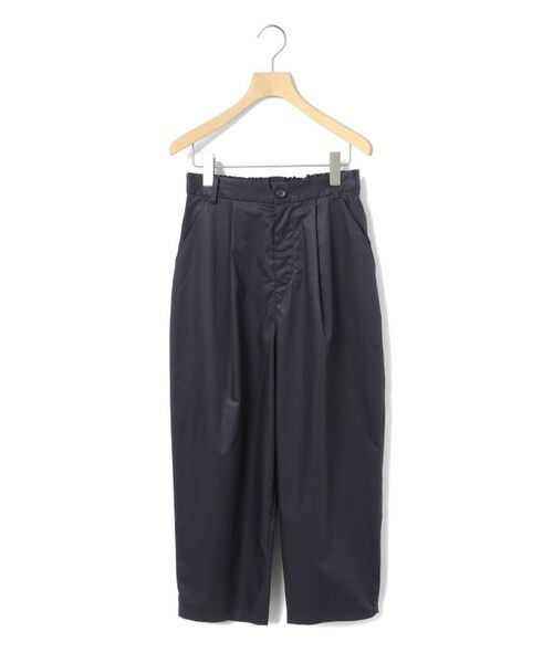 シルエットにややデザイン性をもたせたテーパードパンツ、ハイウエストアンクルパンツです。少し高めなウエスト位置がスッキリとした印象で、ヒップから裾にかけてやや丸みをつけてカーブシルエットに仕上げました。それでいて全体的にはスッキリとした印象で着用いただけるパンツです。後ろウエストはゴムになっているので着心地がラクです。さりげなく裾にタックが入っているところもデザインポイントです。中肉の少しハリ感のあるコットン100%のツイル素材を使用。シルエットの特徴を感じていただける1枚です。