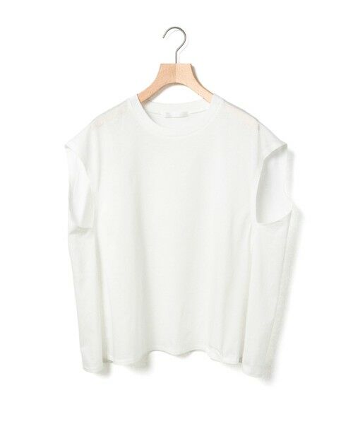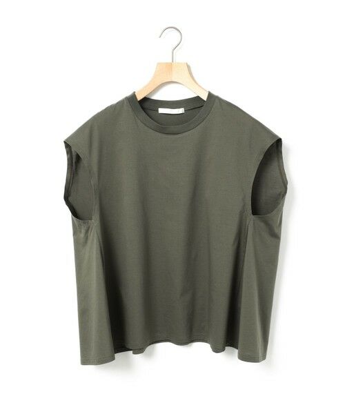 超薄手で少し光沢感のあるキレイ目なコットン100%の天竺素材を使用したドルマントップス。柔らかい素材感とドレープが特徴です。ノースリーブとフレンチスリーブの間のような袖丈で、肩から後ろ身頃に落ちるドレープ感がケープを羽織ったようなシルエットを表現。素材がとても薄くて軽いので、暑い時期にもさらっと涼しく着用していただけます。