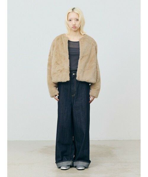 柔らかく温かみのあるファーを使用したファーブルゾンです。クルーネックにフロントフックのシンプルなデザインが特徴。ボリュームが出過ぎないサイズ感とヒップ上のすっきりとした丈なので小柄な方も着用しやすいのもポイント。カジュアルアイテムとのコーディネートにもお勧めで気軽に羽織りやすいブルゾンです。