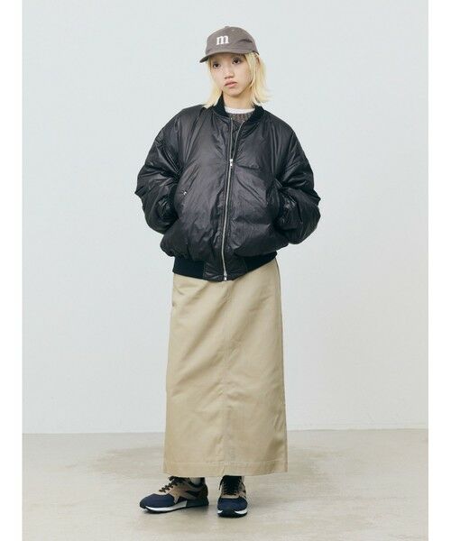 MA-1型のダウンジャケットです。ボリューム感やディティールに拘り、何度も試作を重ねて作成したビックサイズ且つボリューミーなMA-1を表現しました。基本的なMA-1のバランスやディティールはしっかり残しつつ、ボリューム感やサイズ感をMARMARMARらしく作り変えました。特に袖のボリューム感が目を引くワンポイントになっています。大きめのサイジングで仕上げているのでフロントを開けてラフに羽織るのはもちろん、裾まわりの寸法を少し絞っているのでフロントを留めて裾が腰辺りで止まるように着ていただくのもお勧めです。表地の光沢感を抑えるために敢えて裏側を表として使用しているのも隠れたポイント一つです。