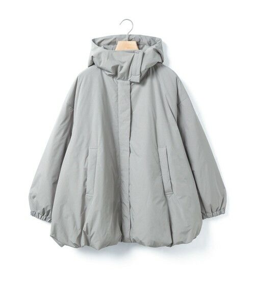 ボリューム感が可愛いフード付きダウンコートです。何度も試作を重ねて作成した今期のアイテムの中でも特にボリューム感がありディティールに拘った存在感のあるアウターになっています。フードはフロントにしっかりと高さを出して見た目だけではなく、防寒性を高めているのがポイント。更にマジックテープ仕様なので簡単に開閉が出来るのも拘りを追及したデザインです。裾には予めギャザーが入っておりますが、ドローコードを付けているのでお好みでシルエットを変化させることが出来ます。存在感は有りますがシンプルなデザインになっているので色々なスタイリングに合わせてコーディネートを楽しんでいただけます。