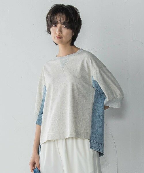 なめらかな肌触りが魅力の綿100%カットソーと、薄手の綿デニム地を組み合わせて洗い加工を入れ、こなれたムードを表現。