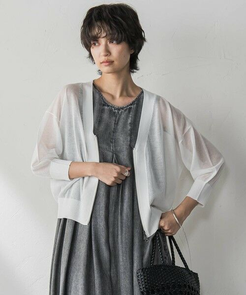 軽やかに纏えてサマになるVネックのシアーカーディガン。