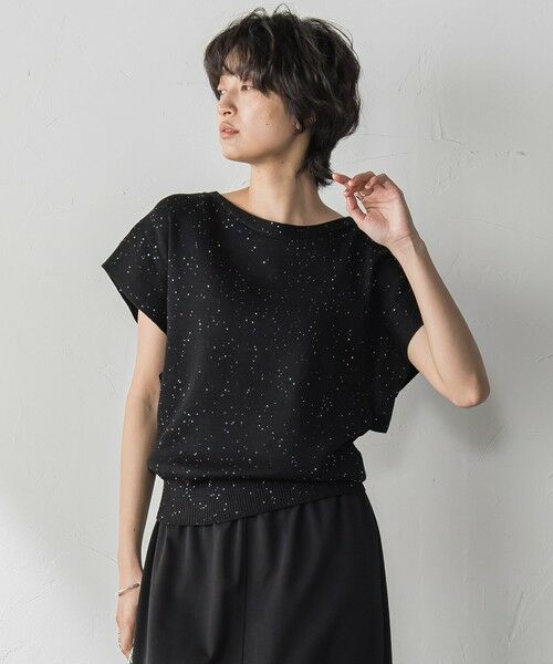 さりげなくきらめくスパンコールが、大人の余裕と華やかさをプラスしてくれるフレンチスリーブニットプルオーバー。