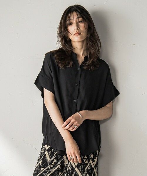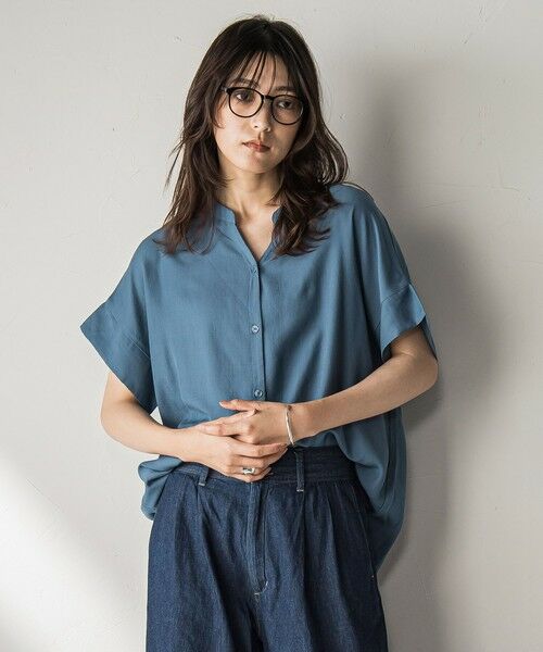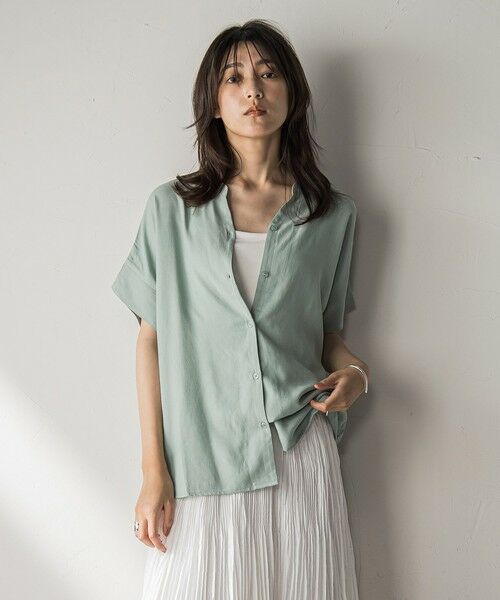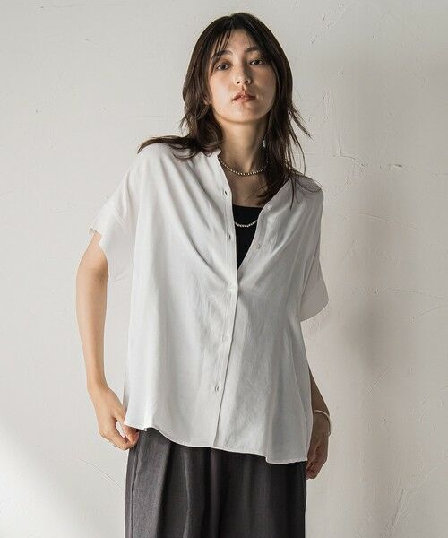 軽やかな素材が涼しげな、バンドカラーのハーフスリーブシャツ。