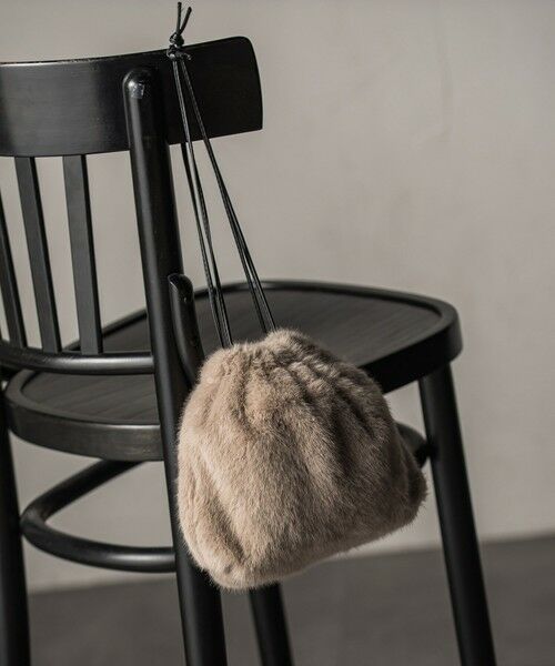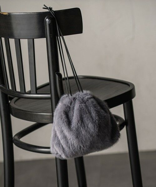 ころんとした丸みのあるフォルムが愛らしい、フェイスファー巾着バッグ。