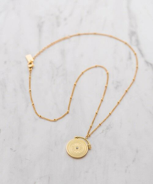 繊細なドットチェーンに、立体的なコインモチーフを添えた、ロングネックレス。