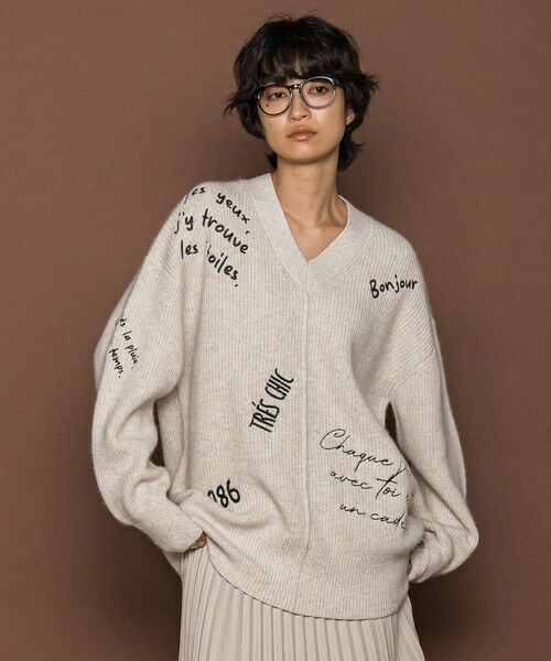 フランス語の挨拶や名言を散りばめた、メッセージ刺繍ニットプルオーバー。