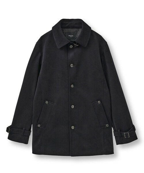 コートとしては短めの着丈なので、軽快で洗練された都会的な印象を与えます。