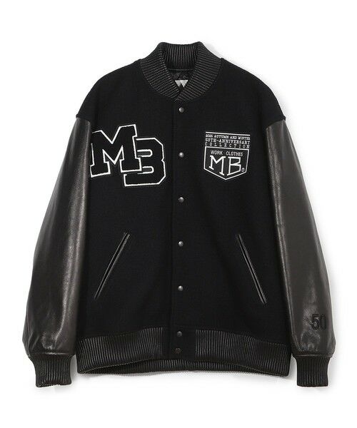 右胸にはパイル素材の「M」と「B」を重ねたワッペンを縫い付け、左胸には1980年代のアーカイブグラフィックをもとにリデザインした刺繍を、袖には「50」の刺繍をさりげない同色で施し、懐かしさと新鮮さを同居させています。