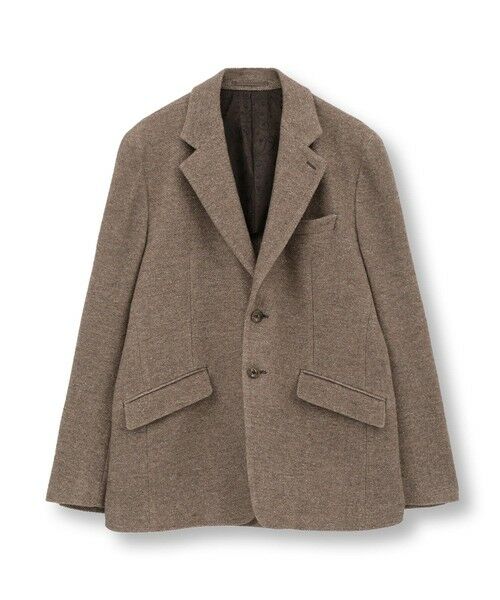 シルクネップを散りばめたウール糸を経編機で丁寧に編み上げた、立体感のある絡み素材のジャケットです。