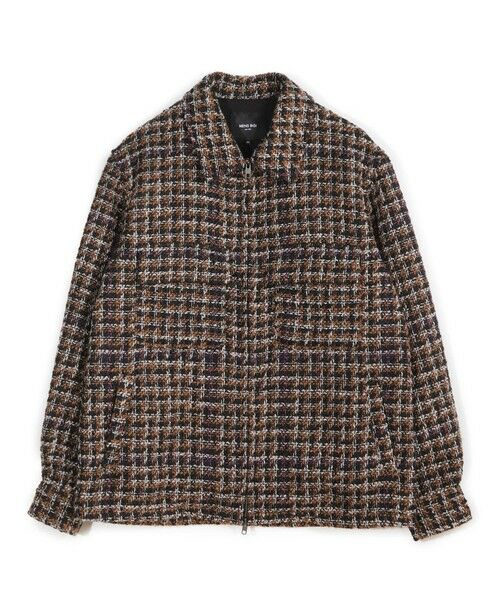 ハウンドトゥース柄の立体感あるファンシーツイードを使用し、軽快な前開きとボックスシルエットでレイヤードも自在。都会的な雰囲気を漂わせるシャツジャケットです。