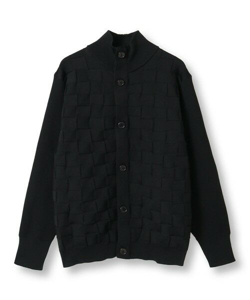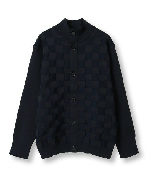 【ふくらみと張りのある素材感が、端正な印象のブロック柄のボタンカーディガン】
