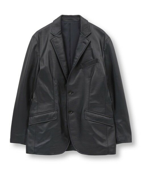 テーラードのディテールを踏襲した胸の箱ポケットや後ろのベント仕様、袖口のあき見せなど、細部までこだわり、レザージャケットでありながら端正でフォーマルな印象に。