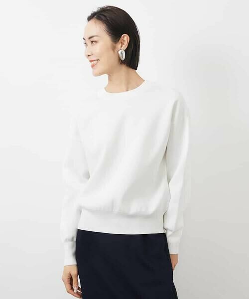 ハイツイストタイプのコットン・ポリエステルの素材をダブルフェイスに編立て、程よい張り感と厚みがあり、スウェットのような気軽さとニットのきちんと感を持ち合わせた素材です。