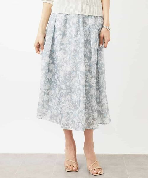 ◆華やかなフラワープリントをジャカード生地にのせた主役級スカート◆