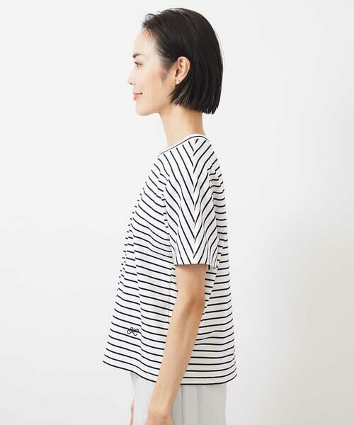 一枚着としてもインナーとしても使いやすい、程よく厚みのある、きれいな表面感のポンチ素材を使ったボーダーTシャツです。MICHEL KLEINの”M”のイニシャル刺繍がワンポイントに入っています。刺繍は特殊な技法で身生地に直接刺していないので、肌面に刺激がないのもうれしいポイントです。40サイズは限定店舗展開です。