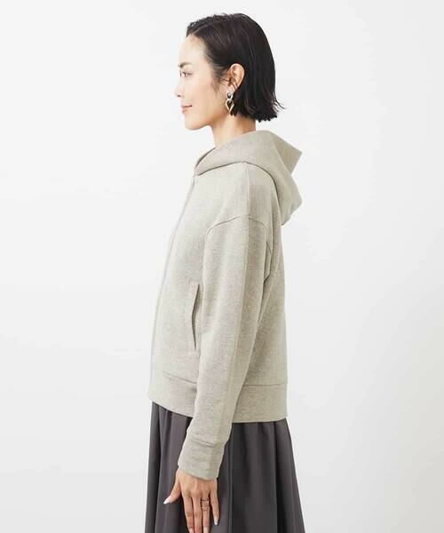 季節の変わり目にさらっと着られるスウェットパーカー。ラメ入りで大人のカジュアルスタイルにアクセントを。40サイズは限定店舗展開です。