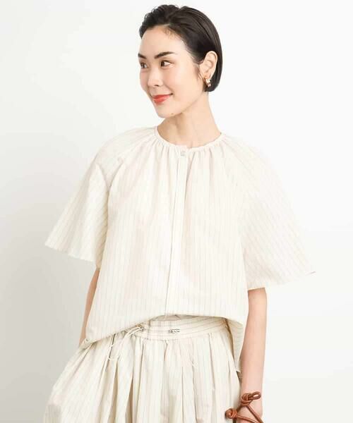 甘すぎないふわっとしたギャザーデザインとリラックスしたサイズ感で、肌に張り付かず風を通す為、シーズン通して涼しく快適な着心地のブラウスです。