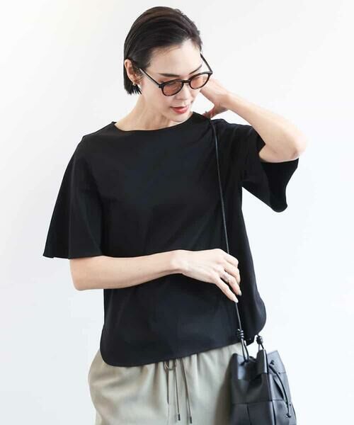 クルーネックですっきりとした首元と身体に沿いすぎない絶妙なサイジングで一枚でも着用しやすい。程よいフレアスリーブが上品な印象のカットソーです。