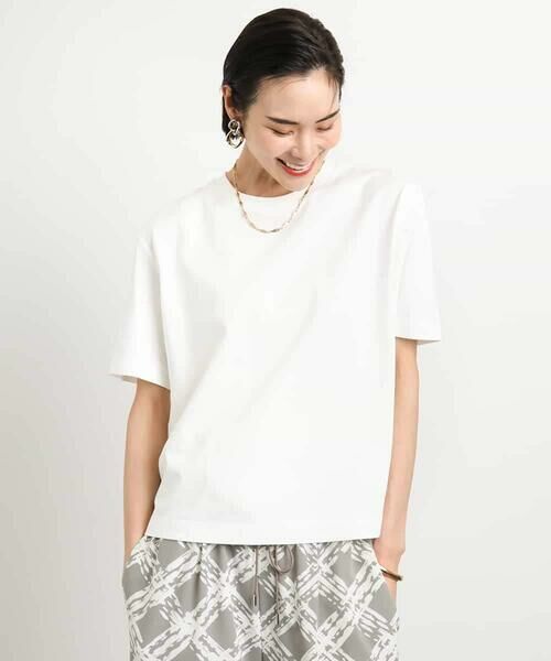 表面がコットン、裏側をポリエステル糸でプレーティングした天竺。洗濯後もしわになりにくく、ケアがしやすい素材です。