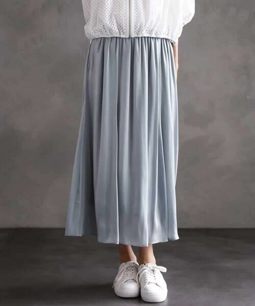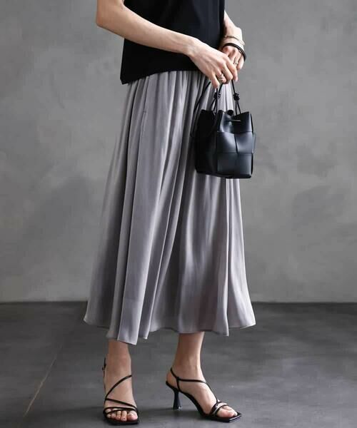 トレンドの<透け感・光沢・表面変化>の3点を抑えた楊柳サテンを使ったギャザースカート。トレンド感のあるスカートですが、オールゴムにすることでチャレンジしていただきやすい一枚です。40サイズは限定店舗展開です。