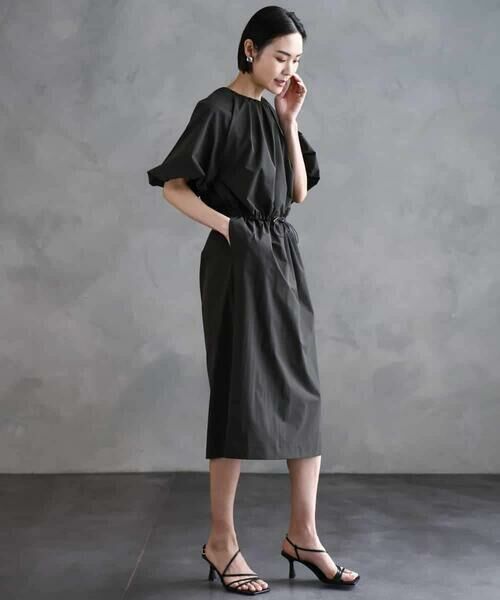 ハリ感と高い伸縮性があるスポーティな素材を活かし、フェミニンになり過ぎないバランスを計算したデザインワンピース。スポーツテイストをミックスさせたウエストのスピンドルで、簡単なサイズ調整もOKなユーティリティデザイン。欲しいシルエットを着る人に合わせられるのもポイントです。40サイズは限定店舗展開です。