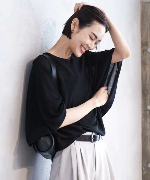 ワイドシルエットのニットはワイドパンツとあわせてリラクシーな着こなしに。裾をインしてスカートあわせのスタイルにもマッチします。