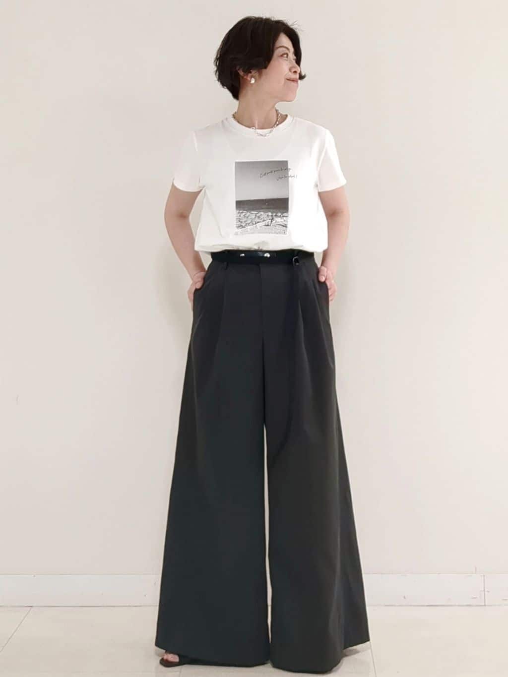 コンパクトなトップスにあわせたすっきりとしたスタイリングがおすすめ。フェミニンなデザインのアイテムとのMIXスタイリングもおすすめです。