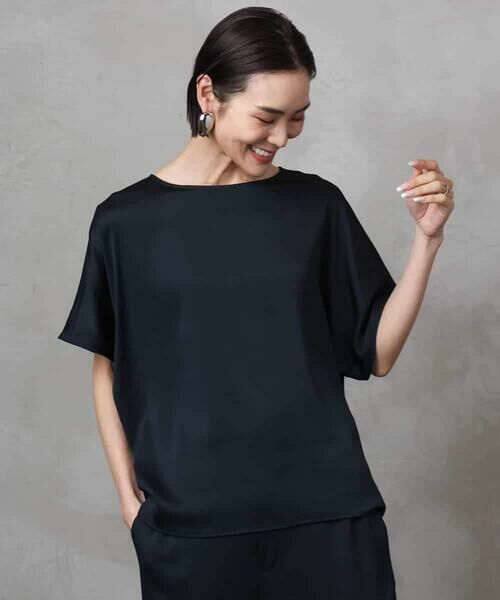 表情のある薄手のサテンをいかしたブラウス。
