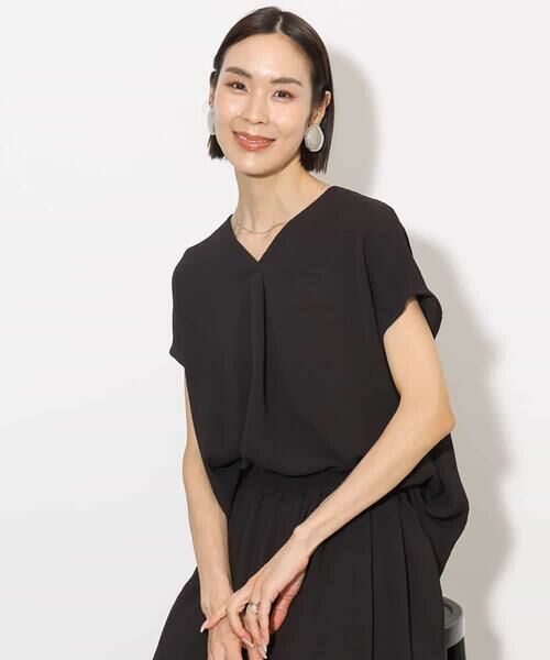 深すぎない衿あきとバックネックのデザインが特徴的なデザイントップス。体のラインが出ないサイズ感、気になる肩、二の腕もさりげなくカバーするデザイン。風が通り涼しく着用いただけます。40サイズは限定店舗展開です。