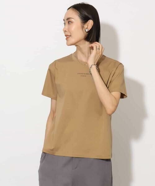 つや感があり、ほどよいサイズ感のロゴTシャツは大人カジュアルスタイルに最適。ジャケットやセットアップのインナーでハンサムコーデを楽しんだり、スカートに合わせてレディライクな着こなしを楽しんだりと汎用性の高いアイテムです。