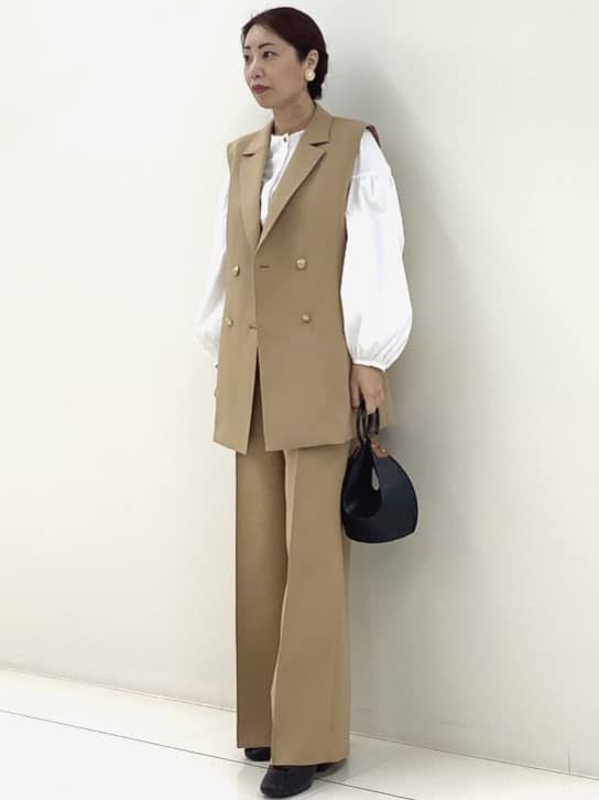 同素材のスカートと合わせたセットアップスタイルがおすすめです。TOPSにはアクセントになるカラーニットを合わせるとトレンド感のある着こなしに仕上がります。また、チノ素材のAラインスカートとも好相性です。