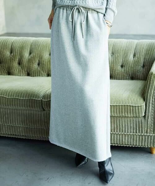 ラメを織り込んだ裏毛素材が、日常のカジュアルスタイルを格上げするナロースカート。ウエストはナイロンタフタで切り替え、ドローストリング仕様を施すことで、スポーティーな要素を残しながらも、モードな洗練を感じさせるデザインになってます。