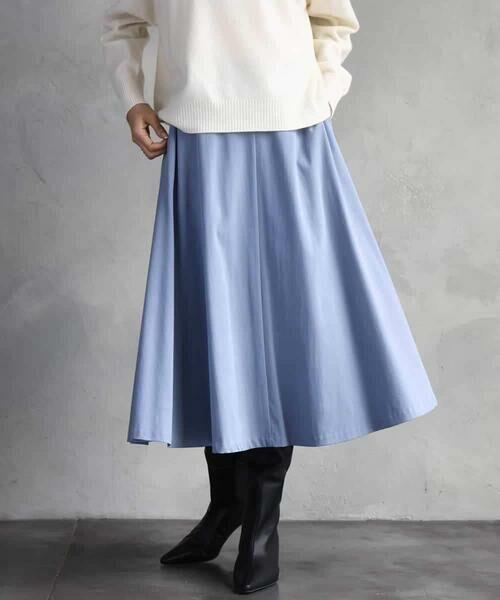 素材の落ち感を活かしたフレアースカート。ウエストはゴムギャザー仕様で、リラクシーな穿き心地ながらも、すっきりとしたシルエットに仕上げています。腰回りはコンパクトに、裾にかけてなだらかに広がるマーメイドラインが、動くたびに美しく揺れ、上品で女性らしい印象を演出します。40サイズは限定店舗展開です。