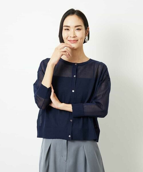 繊細なきらめきと軽い透け感が魅力の薄手ニット。前後どちらを前にしても着られる2WAY仕様で、プルオーバーとしてもカーディガンとしてもお楽しみいただけます。気温の変化が大きい端境期にも取り入れやすく、さっと羽織るだけでコーデに上品な抜け感をプラスしてくれるアイテムです。