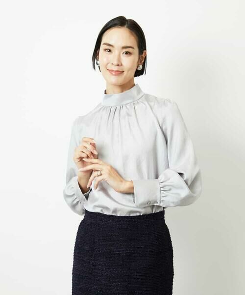 セレモニーやオケージョンでは、ジャケットやジレのインナーとして上品に華やかさをプラス。デイリーにはシンプルなボトムと合わせるだけで、襟元のギャザーやブラウスのディティールが引き立ち、さりげなく女性らしさを演出します。合わせ次第でシーンを問わず着回せます。